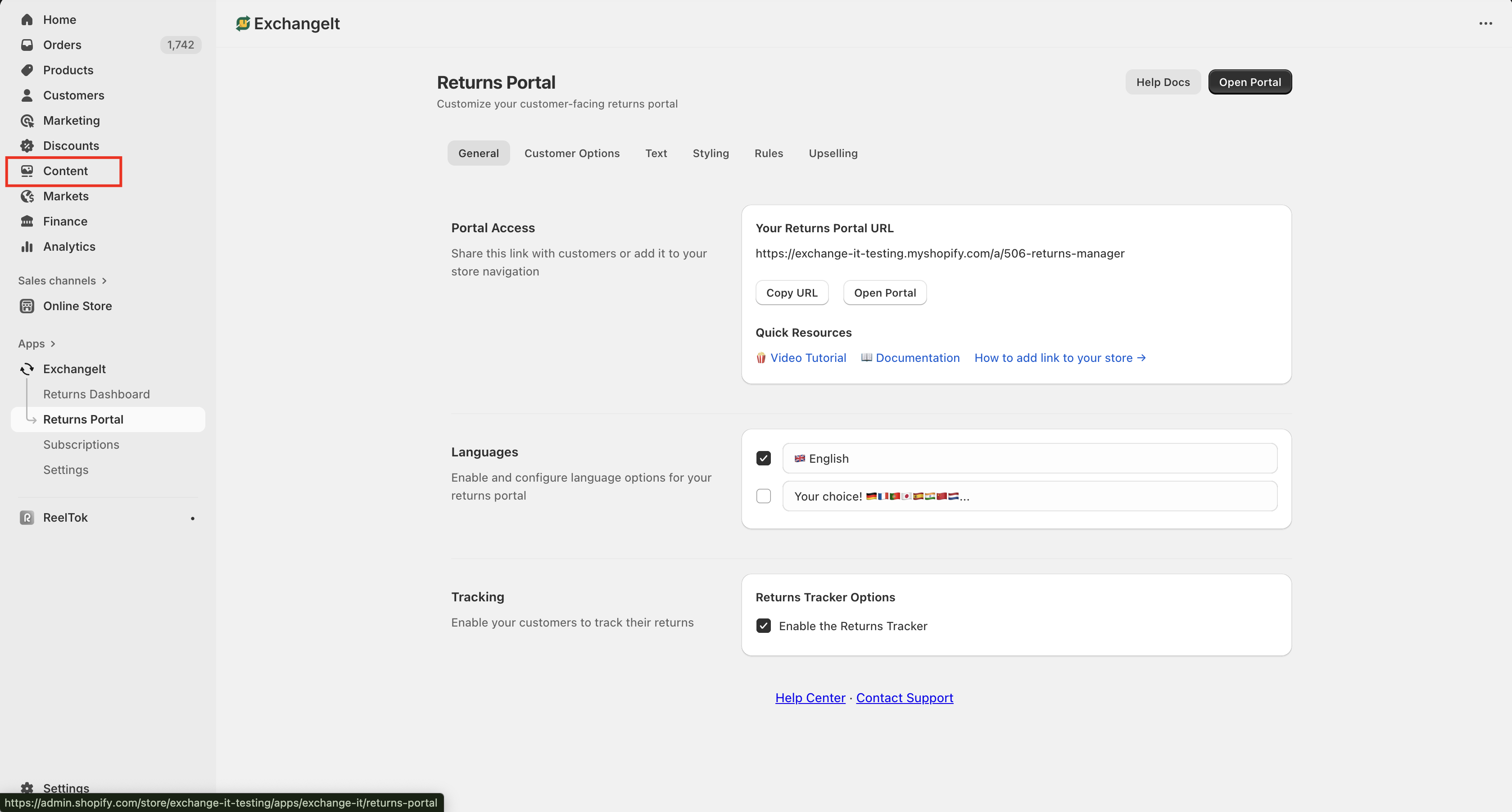 Then you will see the Returns Portal URL under the General tab. Copy the URL.
